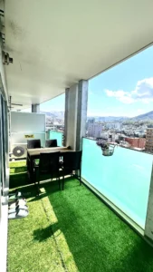 Non smoking unit. Fully furnished apartment with double size bed and 1 single bed , TV and dining space, kitchen, bathroom, toilet.